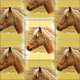 Here is fun fabric featuring a beautiful golden brown horse backlit by the yellow sun.