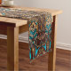 African trip inspired table runner featuring brown blue ethnic pattern.