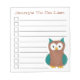 List-style TO DO checklist note pad design features an original marker illustration of a brown and blue owl bird. Just personalize with your information.