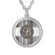 Brown blue stripes custom monogram necklace