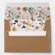 Fall wedding invitation envelopes in brown with watercolor wildflowers and butterflies inside.