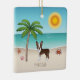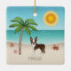 Brown Boston Terrier At A Tropical Summer Beach Ceramic Ornament