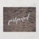 The background has been covered in a photo of brown bricks such as those you might see in your industrial wedding venue. Using a pretty script font with swirls and waves, I created graphics that read "postponed". (A black one behind the white offers a hint of a shadow, making the message pop a bit more.) The back includes template placeholders for your details with matching accents featuring the calligraphy font. Use these template fields to add your personal details and change my draft wording to suit your needs and situation. Other pieces are available in the set and I'm happy to create additional variations upon request. // 99 //