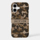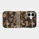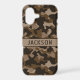 Customize this multi-hued brown camouflage iPhone 17 case with your name in a trendy modern CAP font in dark brown on light brown. It's masculine and perfect for your favorite military, hunting, country or outdoorsman!