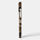Customize this multi-hued brown camouflage iPhone 16 plus case with your name in a trendy modern CAP font in dark brown on light brown. It's masculine and perfect for your favorite military, hunting, country or outdoorsman!