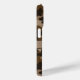 Customize this multi-hued brown camouflage iPhone 15 pro case with your name in a trendy modern CAP font in dark brown on light brown. It's masculine and perfect for your favorite military, hunting, country or outdoorsman!