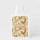 I own a lot of reusable grocery bags, but this one holds its box shape and simply stands up on its own even if there is nothing in it. Its stiffer than your regular reusable bag too, and the material is water resistant. I poured water on the exterior and it didn't penetrate inside to the other side. I'm buying a couple more. Wish I knew how durable these bags were or I would have purchased a few more with my initial order. I also like how it folds and buttons up when not in use, making it easy to put into a handbag or luggage. I haven't used this bag yet, as I purchased it for travel use, like when you're at the airport and need to small sturdy bag to place any airport purchases in, like food, souvenirs etc. I can tell you when you first see this bag, it looks very cheap, but after closer inspection of the material and the seams its a very sturdy reusable bag. I tested it out by putting some really heavy objects inside and I could not observe any stress to the bag at all. Another thing I like about it, is the fact the medium size that this is makes it easy to just carry it in your hand without the bottom of the bag scraping the ground, like most other bags do when you're short. That alone, deserves 5 stars. I just wish there were more colors to choose from! The PDX Airport Carpet printing looks just like the photo, and using this bag during travel might be a conversation piece when/if a native from Oregon happens to see it.