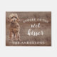 Funny beware of the wet kisser" Brown Cockapoo Dog door mat set on a rustic faux background. Visit our shop to view a large assortment of dog breads