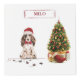 Cocker spaniels come in a few different colors. This brown dog is ready for Christmas as it sits near a holiday tree. Wish family and friends happy holiday and happy new year with this humorous dog gift.