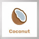 Brown coconut on white background with brown words. Help your little one learn fruits with this coconut design.
