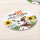 Brown Cow Sunflower Girl First Birthday Round Paper Coaster