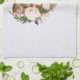 A kitchen towel with a cute design created with watercolors featuring a brown cowgirl hat with a bouquet of pink flowers on the brim.