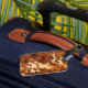The cowhide leather details are simulated in the artwork. No actual cowhide or leather will be used in the making of this product.