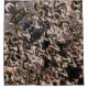 A warm earthy brown, cream and black Autumn toned abstract wavy pattern. From a distance, the image looks like reptilian scales on a snake, like a carpet python.