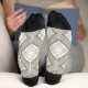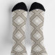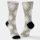 These unisex socks feature a diagonal plaid pattern in shades of brown, tan, cream and gray.