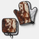 Brown Cream Western Cowhide Oven Mitt & Pot Holder Set