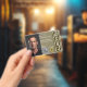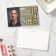 Professional ID badge for private security officers featuring your name, title, photo, QR code, ID number, and expiration date. Includes your company’s branding and contact details on the back. A sleek brown and gold design ideal for formal uniforms and site patrol.