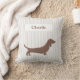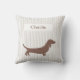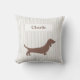 Brown Dachshund on Beige Stripes Custom Name Throw Pillow
