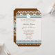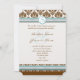 Brown Damask Aqua Blue Trim Wedding Invitation