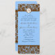 Brown Damask On Blue Wedding Invitation