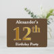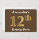 Brown, Faux Gold 12th Birthday Party; Custom Name Invitation