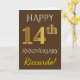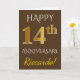 Brown, Faux Gold 14th Wedding Anniversary + Name Card