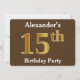 Brown, Faux Gold 15th Birthday Party; Custom Name Invitation