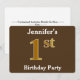 Brown, Faux Gold 1st Birthday Party; Custom Name Invitation