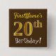Brown, Faux Gold 20th Birthday, With Custom Name Button