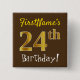 Brown, Faux Gold 24th Birthday, With Custom Name Button