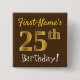 Brown, Faux Gold 25th Birthday, With Custom Name Pinback Button