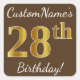 Brown, Faux Gold 28th Birthday + Custom Name Square Sticker