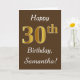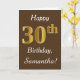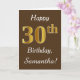 This simple birthday card design features the message "Happy 30th Birthday", with the "30th" having a faux gold-like appearance. It also features a customized name, and a brown background. It could be given to somebody who is celebrating their thirtieth birthday.