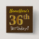 Brown, Faux Gold 36th Birthday, With Custom Name Button