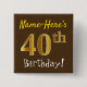 Brown, Faux Gold 40th Birthday, With Custom Name Pinback Button