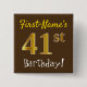 Brown, Faux Gold 41st Birthday, With Custom Name Button