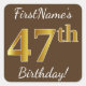 Brown, Faux Gold 47th Birthday + Custom Name Square Sticker