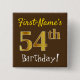 Brown, Faux Gold 54th Birthday, With Custom Name Button