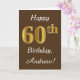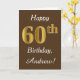 Brown, Faux Gold 60th Birthday + Custom Name Card