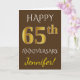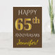 This simple, personalized wedding anniversary greeting card design features the message "HAPPY 65th ANNIVERSARY", with the "65th" having a faux gold-like appearance. The front also features a personalized name, and a brown colored background. The inside features a customized wedding anniversary greeting message. It could be given to a husband or a wife in celebration of the couple’s sixty fifth wedding anniversary. [~Z0000090]