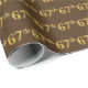 This wrapping paper design features the ordinal number "67th" with a faux/imitation gold-like appearance. It also features a brown background. It could be used when wrapping a gift being given for somebody’s sixty seventh birthday, or perhaps for a married couple’s sixty seventh wedding anniversary, or for some other 67th event/occasion. [~Z0000024]