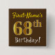 Brown, Faux Gold 68th Birthday, With Custom Name Pinback Button