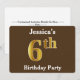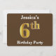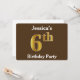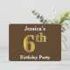 Brown, Faux Gold 6th Birthday Party; Custom Name Invitation