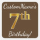 Brown, Faux Gold 7th Birthday + Custom Name Square Sticker