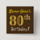 Brown, Faux Gold 80th Birthday, With Custom Name Pinback Button