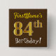 Brown, Faux Gold 84th Birthday, With Custom Name Button
