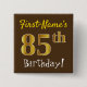 Brown, Faux Gold 85th Birthday, With Custom Name Pinback Button