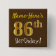 Brown, Faux Gold 86th Birthday, With Custom Name Button