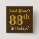 Brown, Faux Gold 88th Birthday, With Custom Name Pinback Button