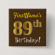 Brown, Faux Gold 89th Birthday, With Custom Name Pinback Button